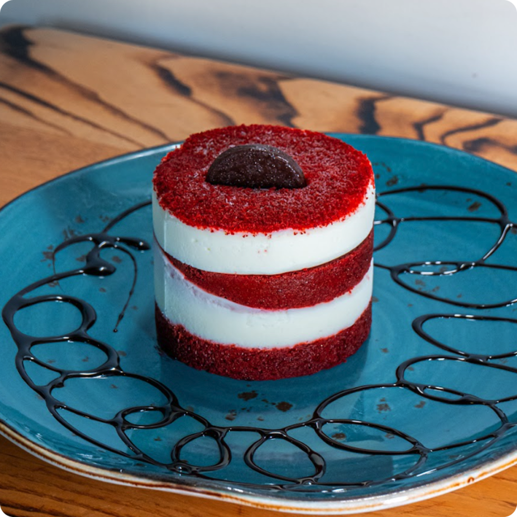A rich, velvety red velvet cake with delicate cocoa notes, layered with smooth, creamy cream cheese frosting. Moist, tender, and perfectly balanced with a hint of sweetness in every bite.